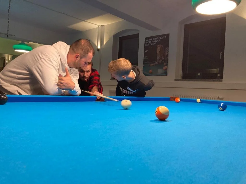 Unser Vorstand mietete für diesen Abend den Raum des in der Kulturfabrik ansässigen Billard-Vereins, welcher auf einer Etage mehrere Tische und sogar einen echten Snooker-Tisch beherbergt.